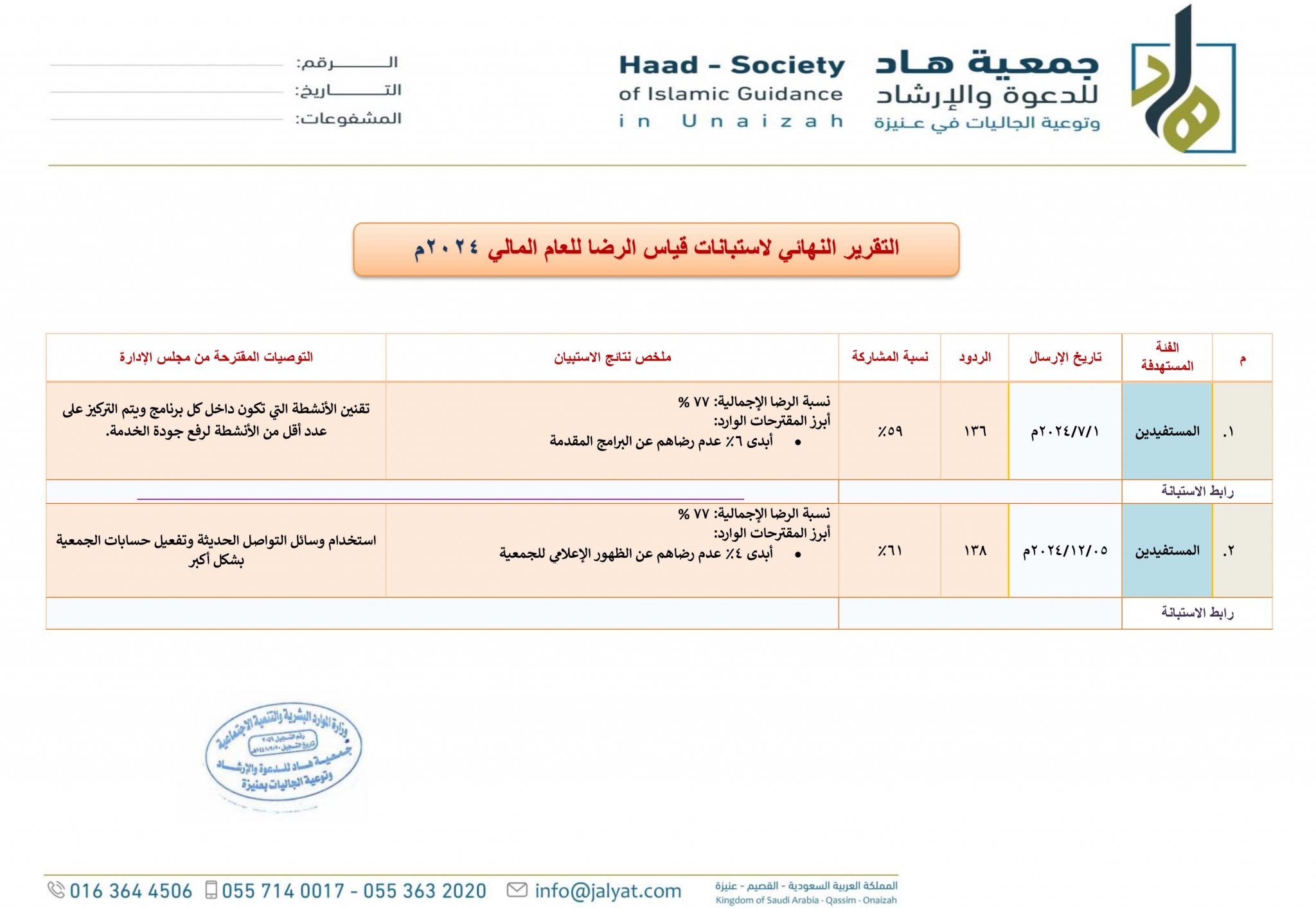 التقرير النهائي لاستبانات قياس الرضا للعام المالي 2024م
